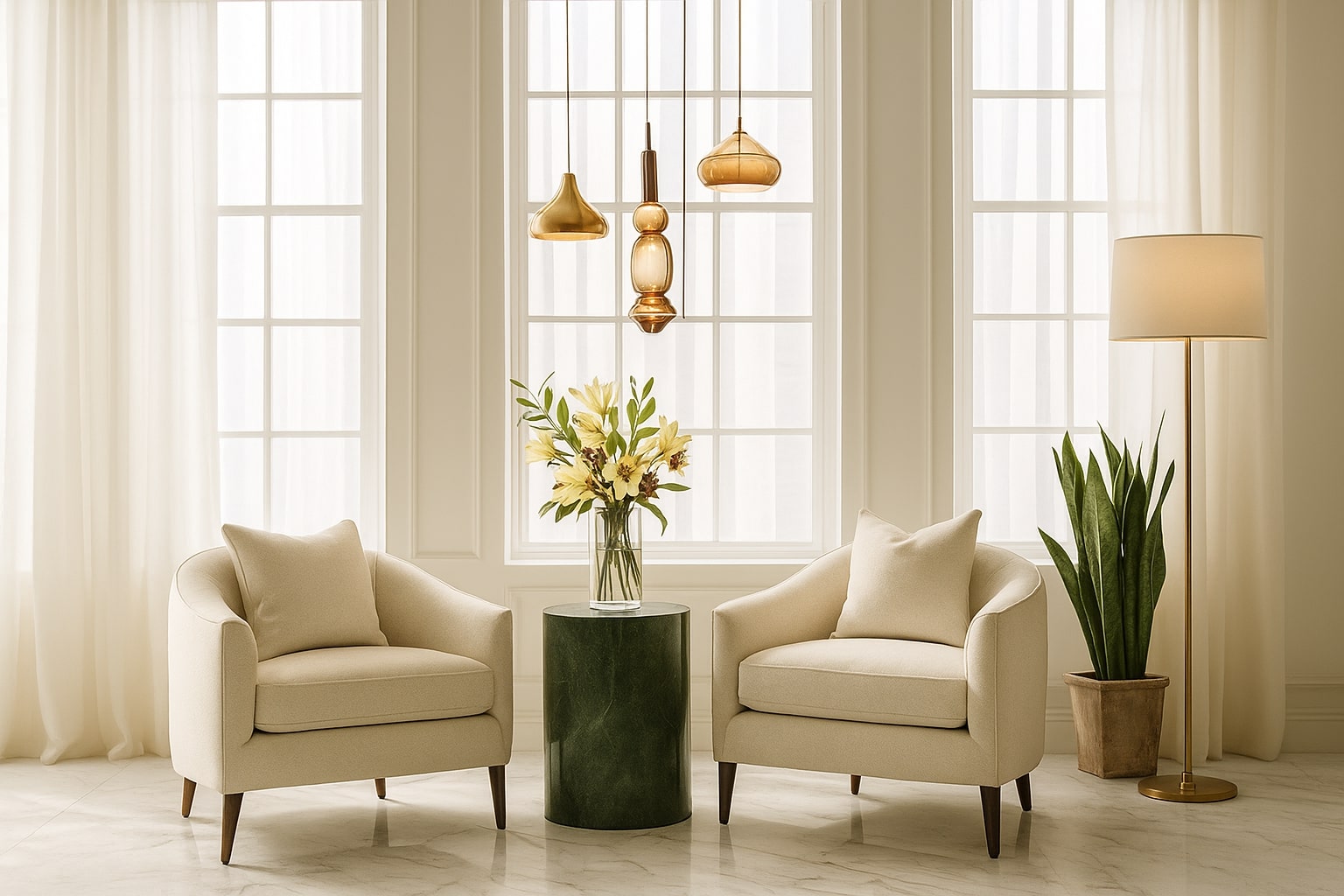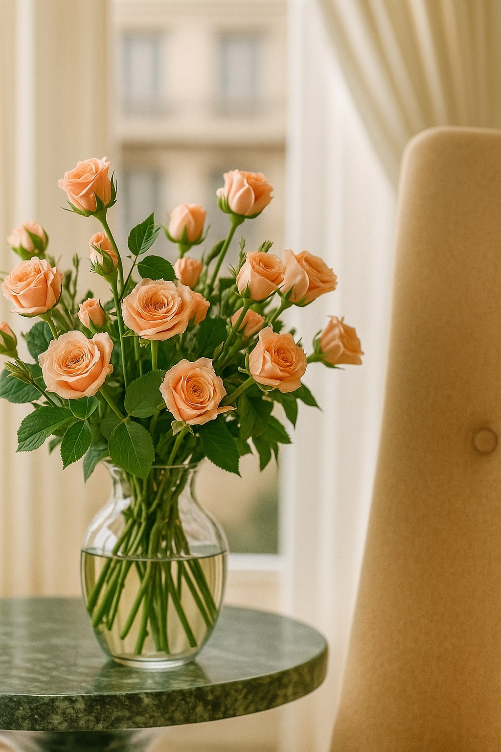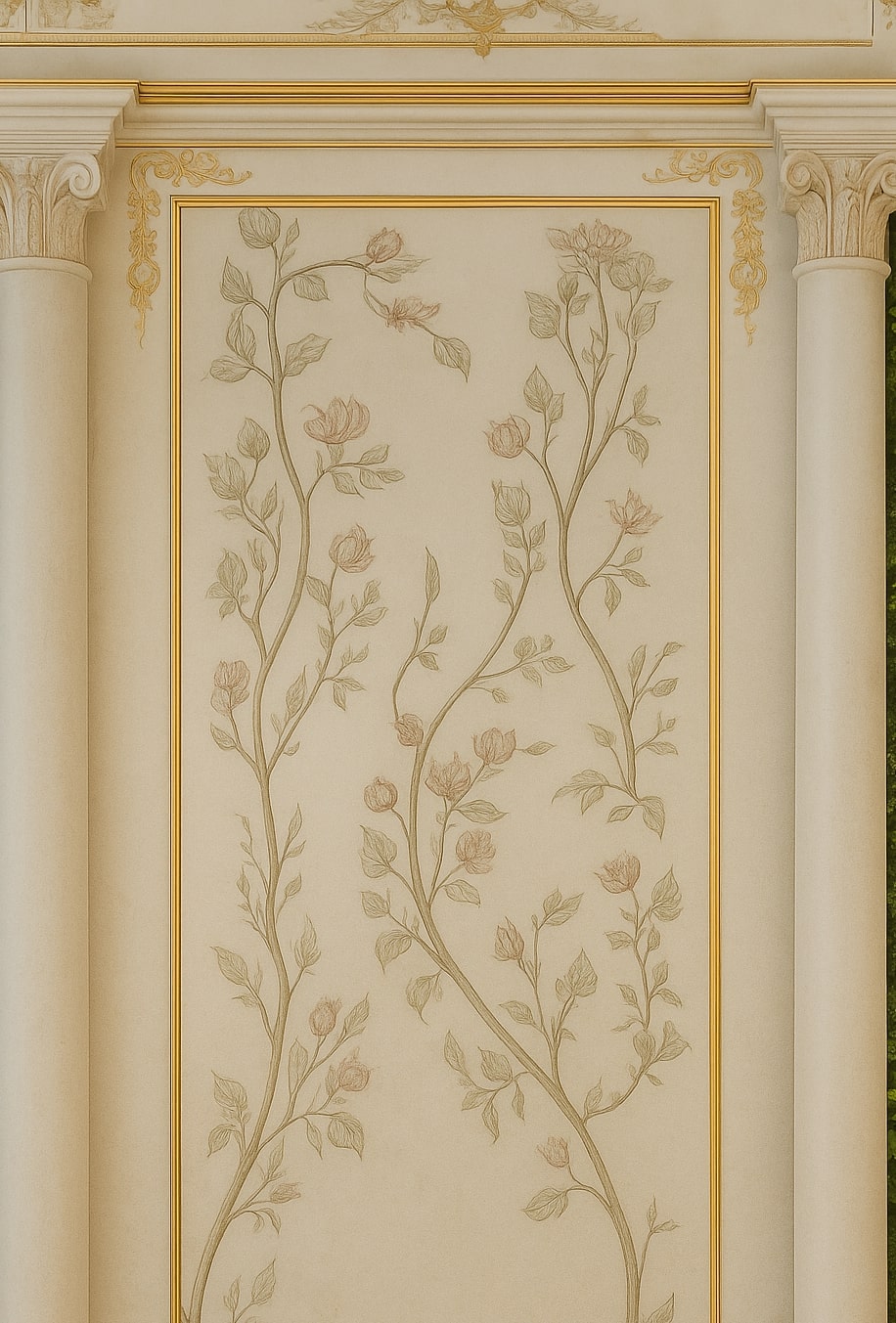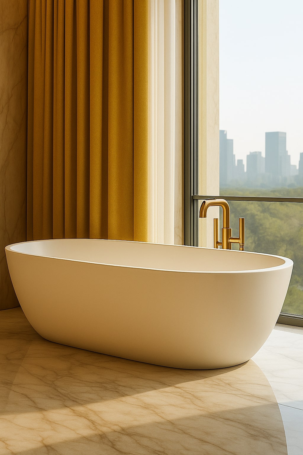 The design features open, flowing spaces enhanced by arches, travertine cladding, and natural stone flooring. The lobby celebrates grandeur with marble reception desks, custom chandeliers, and a central water fountain reminiscent of Kensington Palace. Each Executive Suite offers a serene escape — oak wood flooring, traditional paneling, embroidered fabrics, and organic forms create a calming ambiance infused with natural light and warmth.
