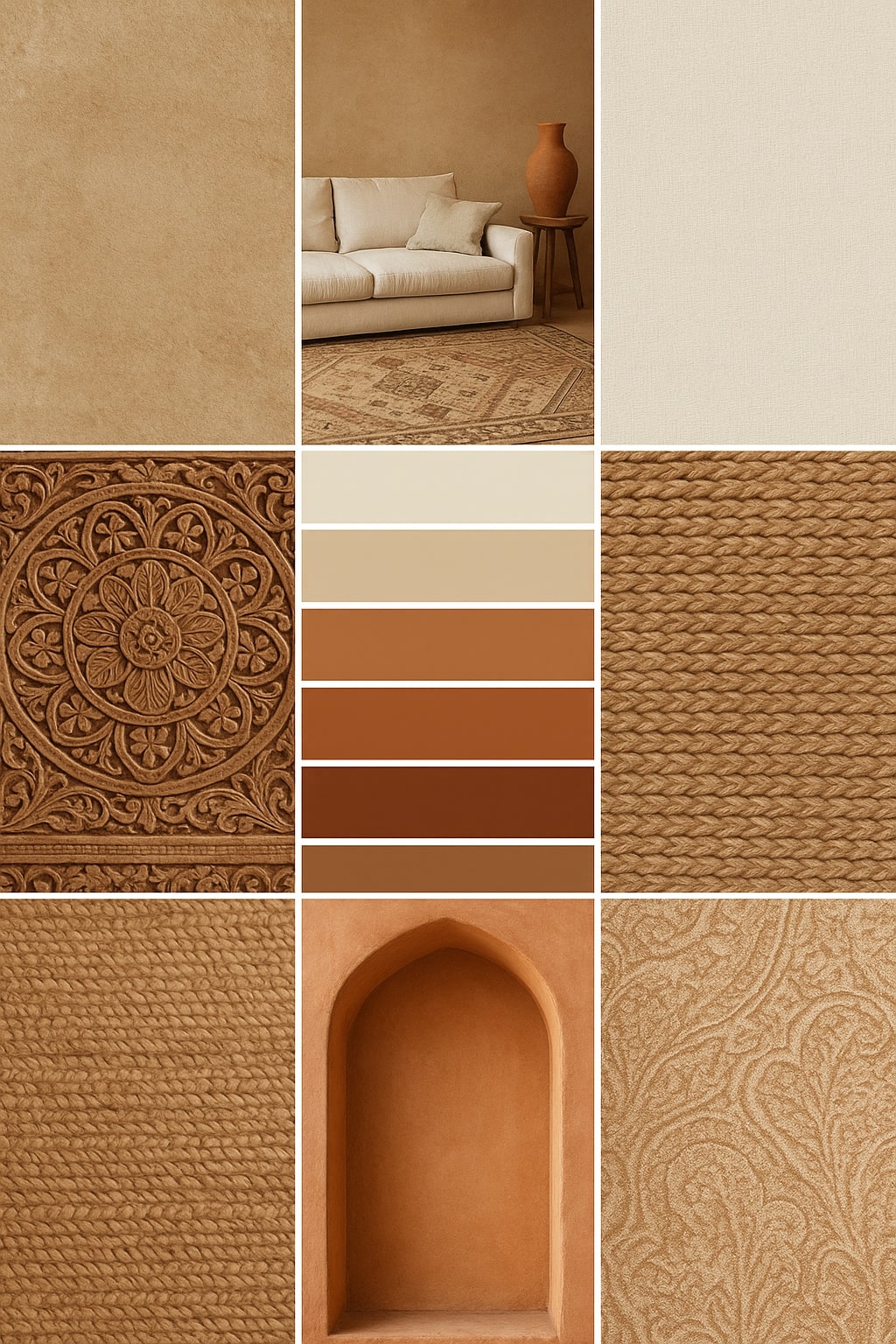 Middle Eastern Desert LandscapesWarm sand, terracotta, deep ochreGrounding, serene, inviting