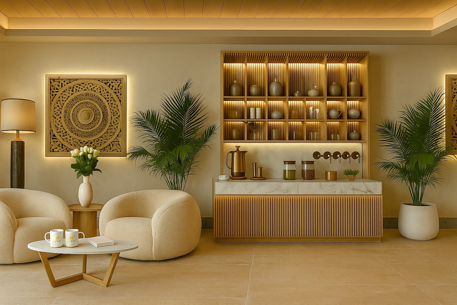 - Relaxation lounge with traditional seating & herbal infusions