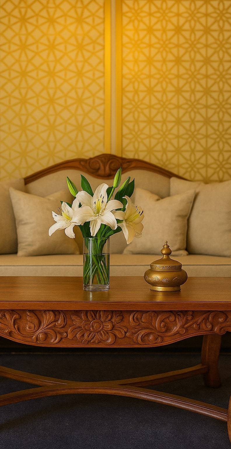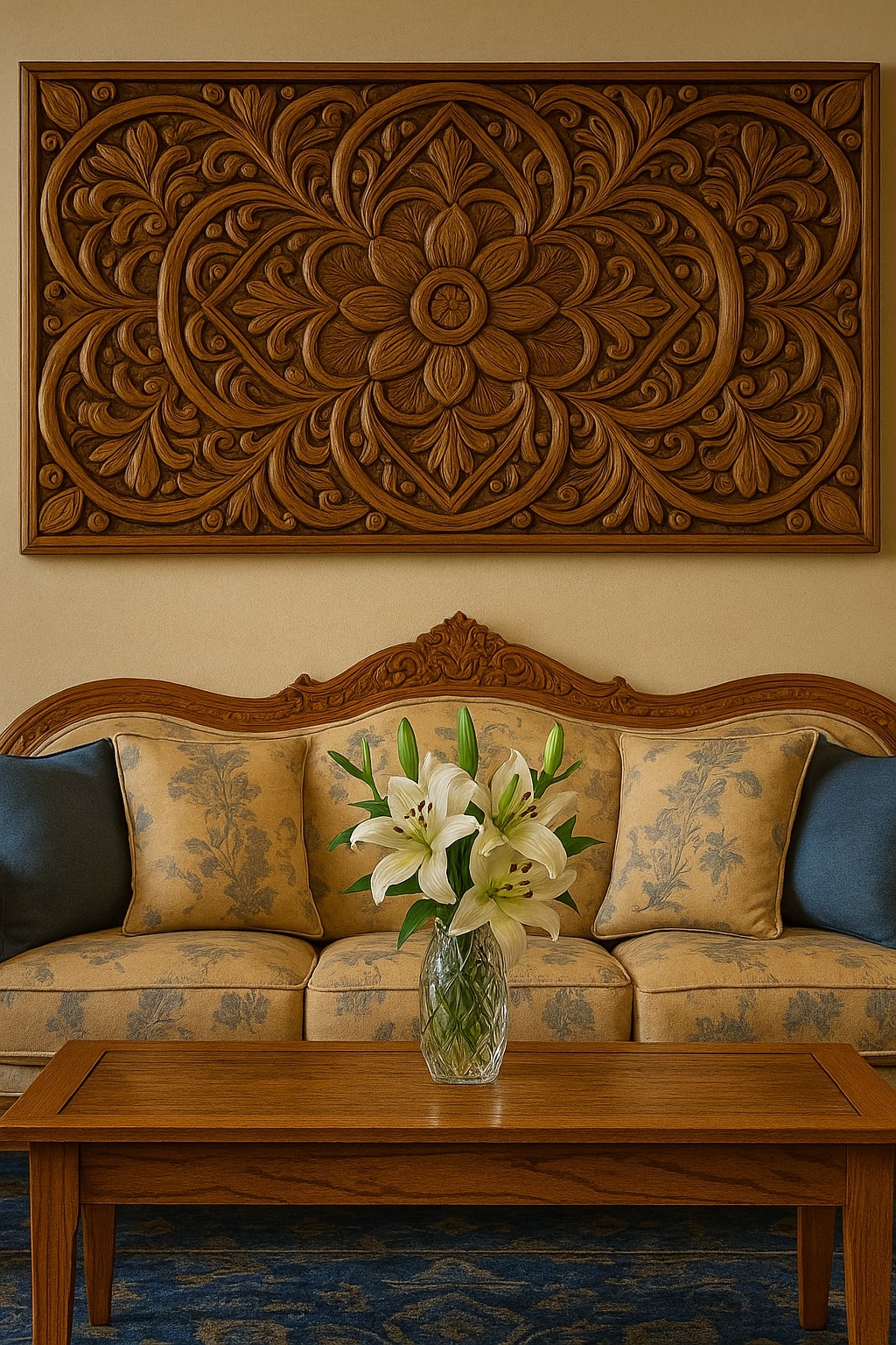- Hand-carved feature wall art with Arabic calligraphy